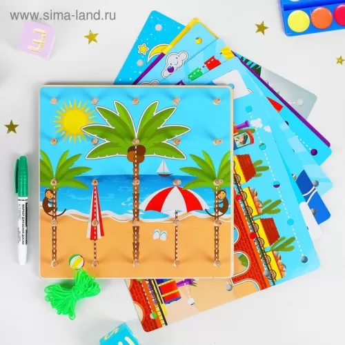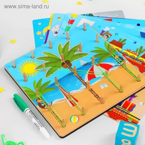 Геоборд «Резинки», маркер, 8 двусторонних карточек