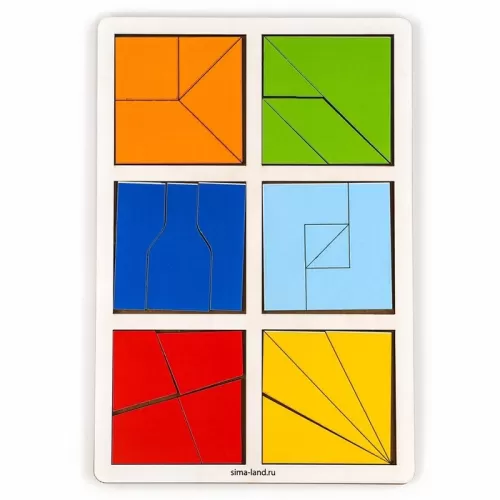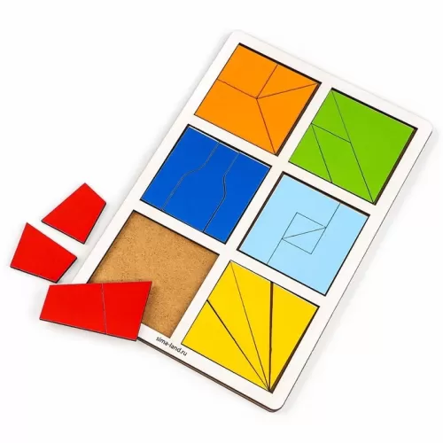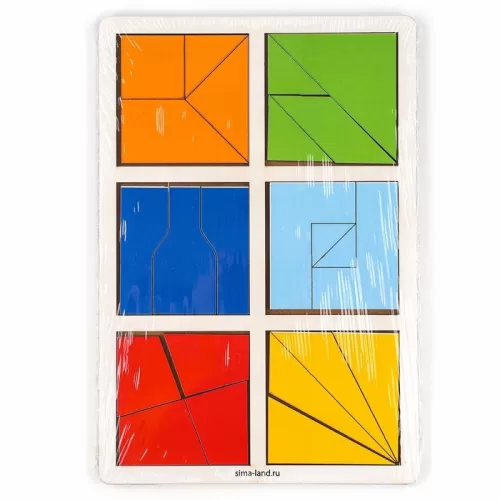 Головоломка геометрическая деревянная «Квадраты» 2 уровень, 6 квадратов