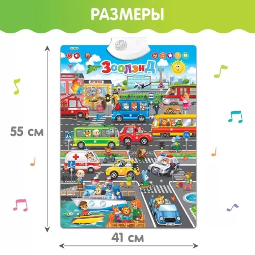 Говорящий электронный плакат «Зоолэнд», работает от батареек