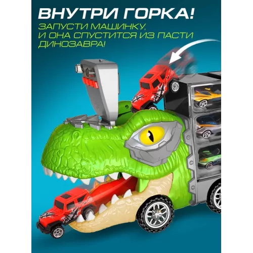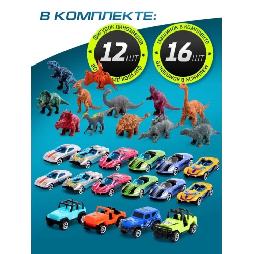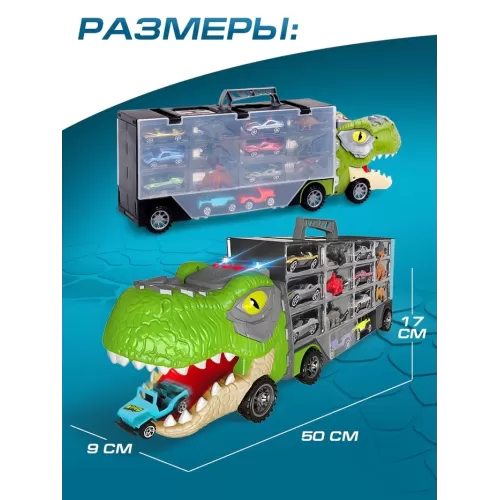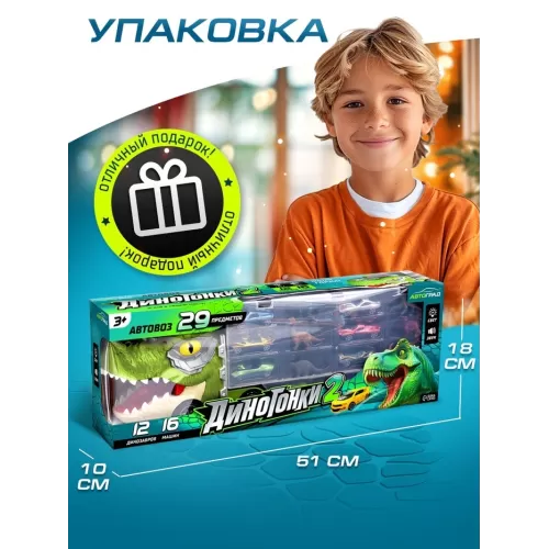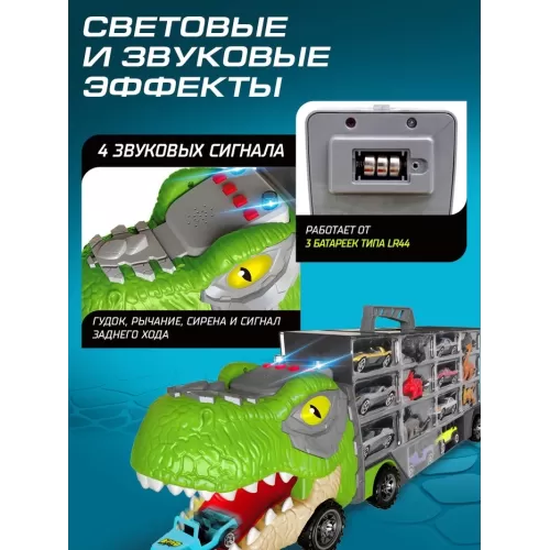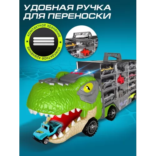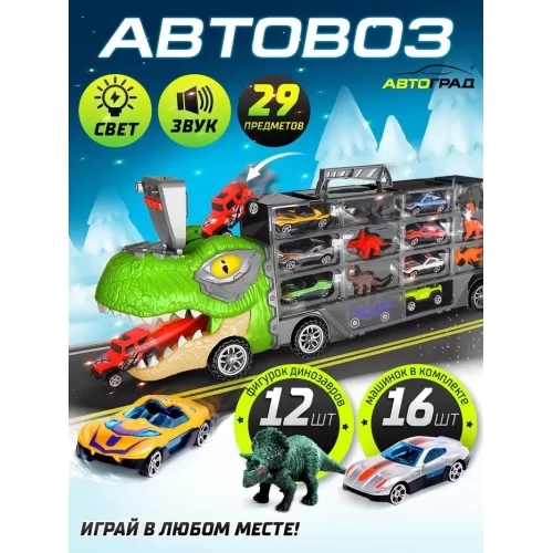 Грузовик большой «Автовоз. Диногонки 2», детский набор: машинки 16 шт., динозавры 12 шт., свет и звук