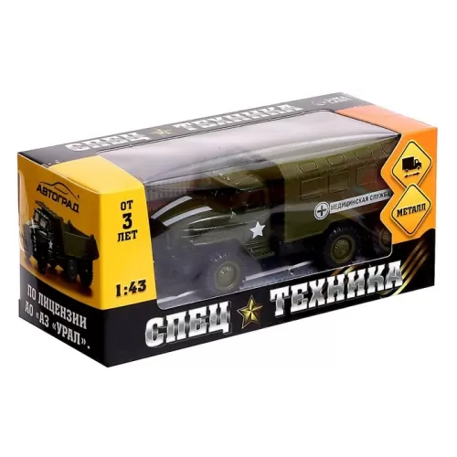 Грузовик металлический «УРАЛ «Армия», инерция, масштаб 1:43, цвет зелёный