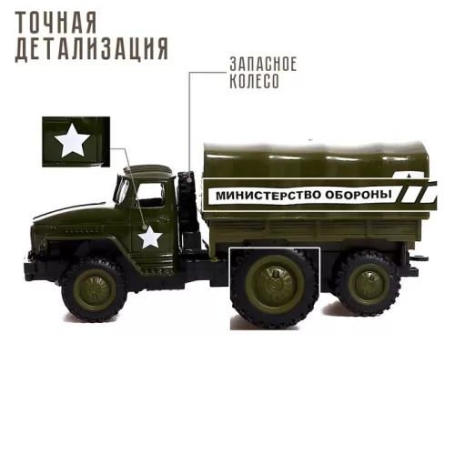 Грузовик металлический «УРАЛ «Армия», инерция, масштаб 1:43, цвет зелёный