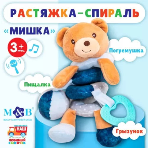Растяжка - спираль на коляску/кроватку Крошка Я «Мишка», с прорезывателем, от 3 мес