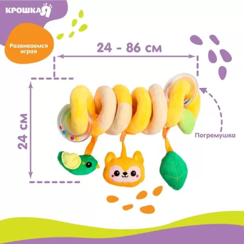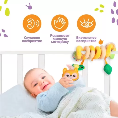 Растяжка - спираль с игрушками Крошка Я «Лесные зверята» дуга на коляску/кроватку для малышей