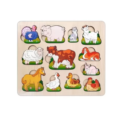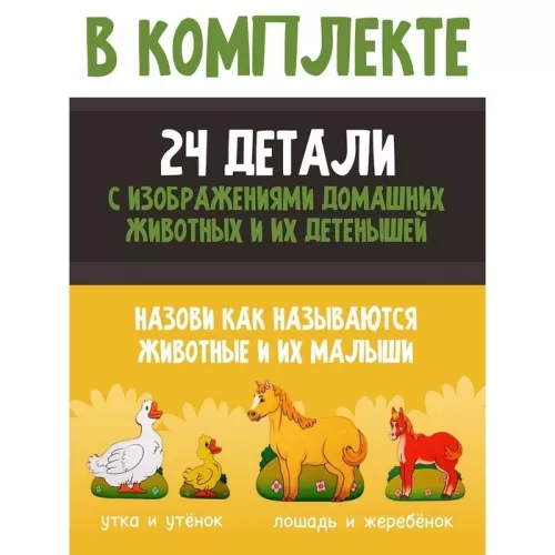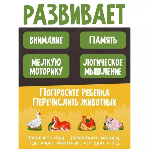 Развивающая доска «Чей малыш?Домашние животные и птицы», двойная рамка - вкладыш