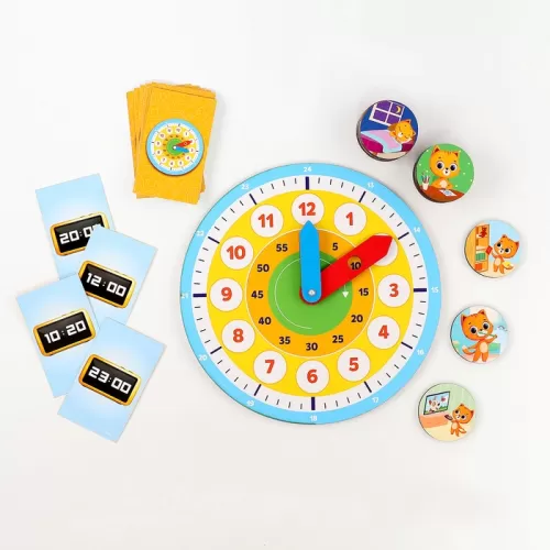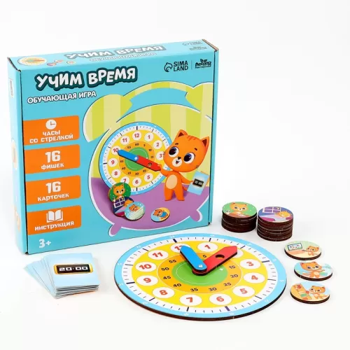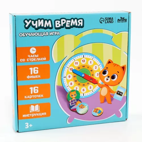 Развивающая игра «Часы. Учим время», 16 карточек, 16 фишек