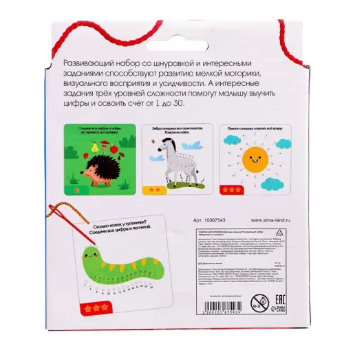 Развивающий набор «Шнуровка по номерам», 3+