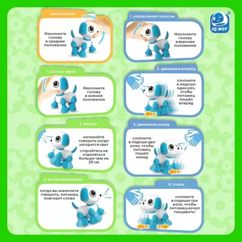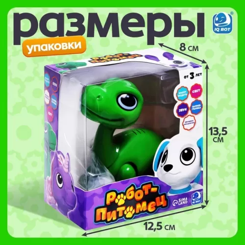 Робот - питомец «Динозавр» IQ BOT, интерактивный: реагирует на голос, звук, свет, на батарейках, зелёный