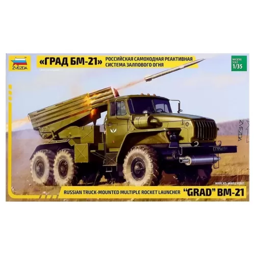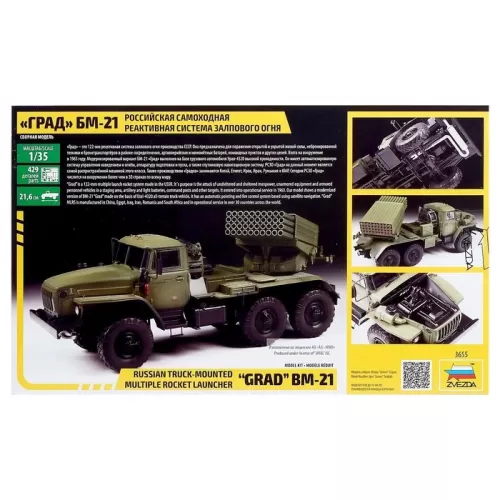 Сборная модель-грузовик «Российская самоходная реактивная система залпового огня ГРАД БМ-21» Звезда, 1/35, (3655)