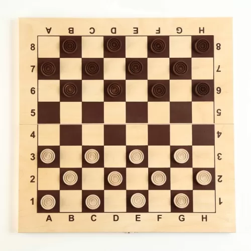Шашки деревянные, настольная игра, с доской 43×43 см, с подклейкой, d=2.8 см
