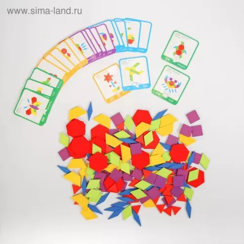 Танграм «Геометрический пазл», 24.5×21.3×4 см, 24 карточки, 155 деталей