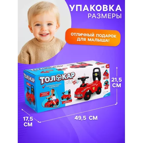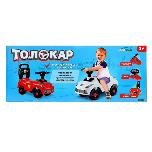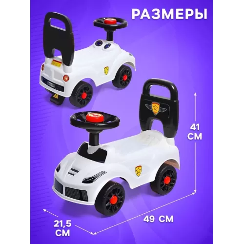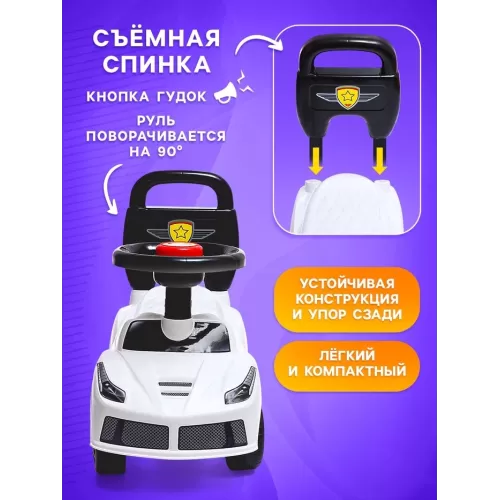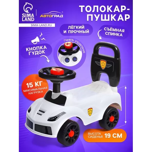 Толокар - пушкар детский «Ночной гонщик. Машинка», звуковые эффекты, цвет белый