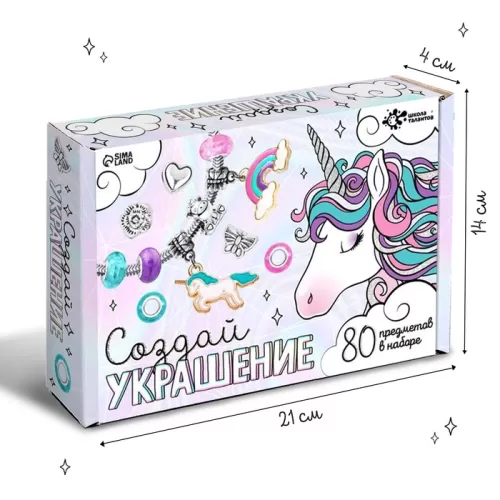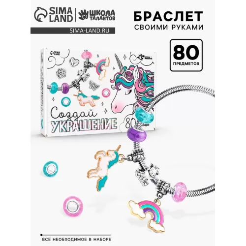 Украшения для девочек своими руками «Единорог», 80 предметов в наборе, набор бусин для творчества