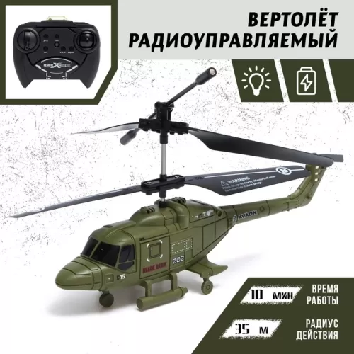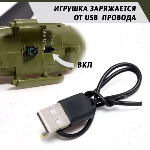 Вертолёт радиоуправляемый «Армия», заряд от USB, свет, цвет зелёный