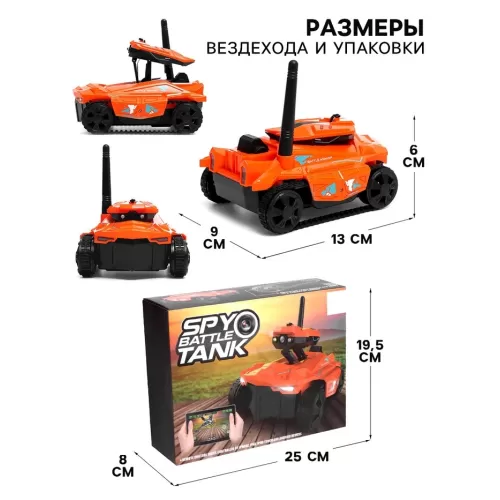 Вездеход радиоуправляемый «Шпион» с видеокамерой, управление с телефона, свет, цвет оранжевый