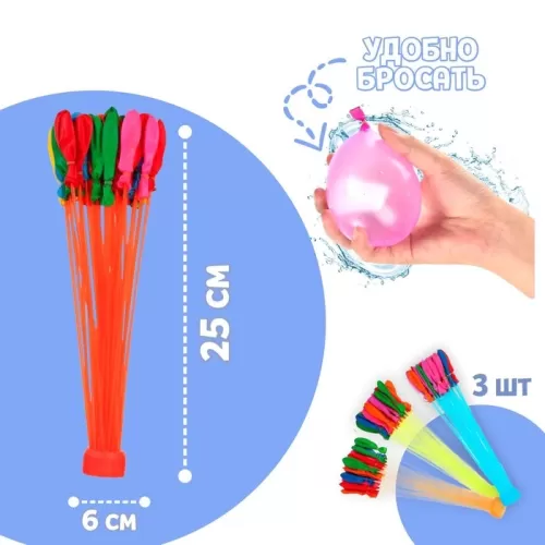 Водяные бомбочки «Шар», 3 насадки, 111 шаров, МИКС
