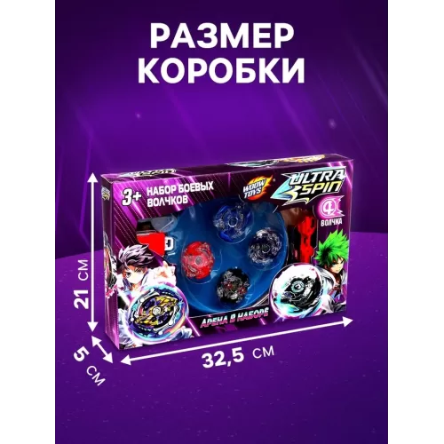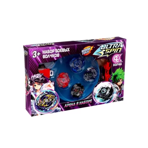 Волчки ULTRA SPIN, набор 4 шт., с устройством запуска и ареной